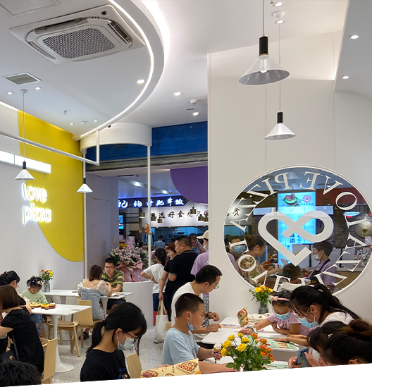 愛八寸品牌從十幾平米到上百平米均可開店,規劃科學,裝修標準。總部為門店配送半成品的披薩餅胚.